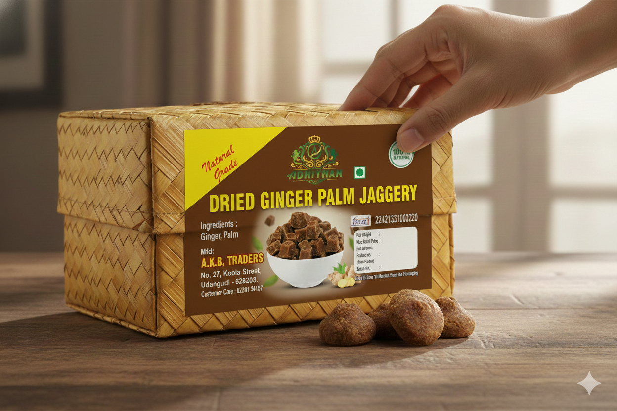 “பாரம்பரிய மருத்துவ குணங்கள் நிறைந்த எங்களின் உயர்தர சுக்கு கருப்பட்டி. சுக்கின் நற்பண்புகள் சேர்க்கப்பட்ட இந்த இயற்கை இனிப்பு, செரிமானக் கோளாறுகள், சளி மற்றும் தொண்டை கரகரப்பிற்குச் சிறந்த தீர்வாகும். இது உடலில் உள்ள நச்சுக்களை நீக்கி, வளர்சிதை மாற்றத்தை சீராக்குவதோடு உடனடி ஆற்றலை வழங்குகிறது. டீ மற்றும் மூலிகை பானங்களில் சேர்க்க ஏற்ற ஆரோக்கியமான மாற்றாகும்!”